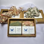 *Please note: each soap duo is put together with two soaps chosen randomly and you may not receive the exact soaps shown in the photo. Also, the ribbon color and pattern you receive may differ from the ones in the photos, and I cannot take requests for specific ribbons that match the ones in the photos. Each set will include a randomly selected festive ribbon.